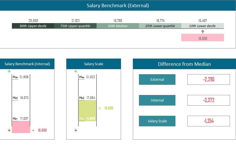 داشبورد تقييم الرواتب حسب الوظائف والمقارنة بالسوق على اكسل