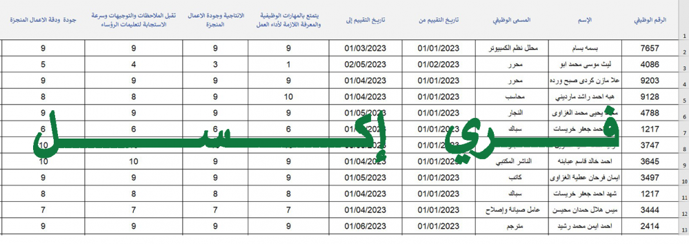 نماذج من سجلات تقييم أداء الموظف في اكسل